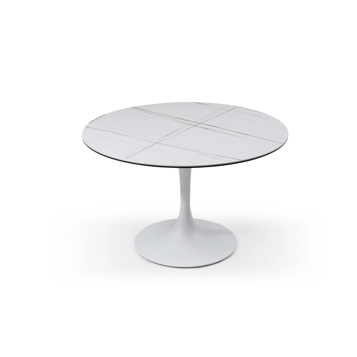 Enhance the atmosphere of your space with this stylish round meeting table. It features a timeless design that boasts a sleek 8mm glass and 6mm white ceramic top. And it’s all supported by a sturdy white powder-coated steel base for durability. Schedule your next huddle at this elegant white gold table.