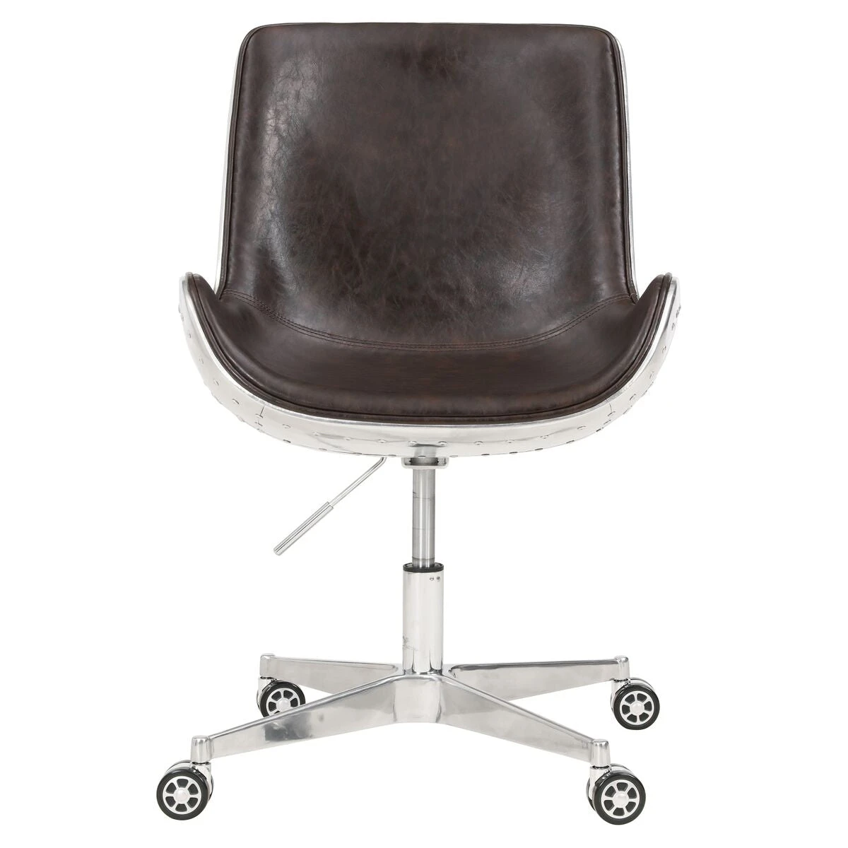 This stylish chair is a perfect addition to any modern office environment. Made from a soft leatherette with a solid aluminum frame, this chair swivels, rolls, and adjusts in height. The unique scoop-style design is eye-catching while also offering a comfortable seat.