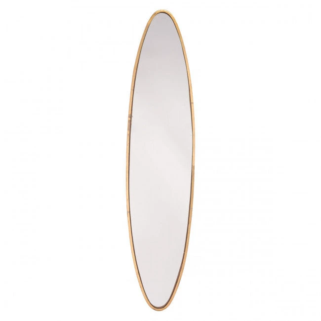 You can’t go wrong with simplicity. This mirror features an oval shape with a simple steel frame finished in gold. The clear glass will reflect the light, making your space feel bigger and brighter.ย