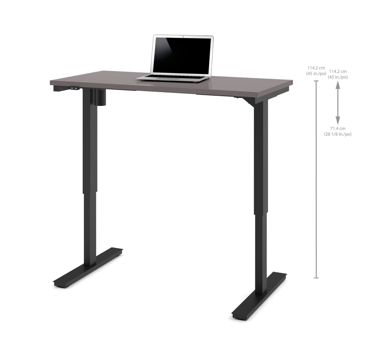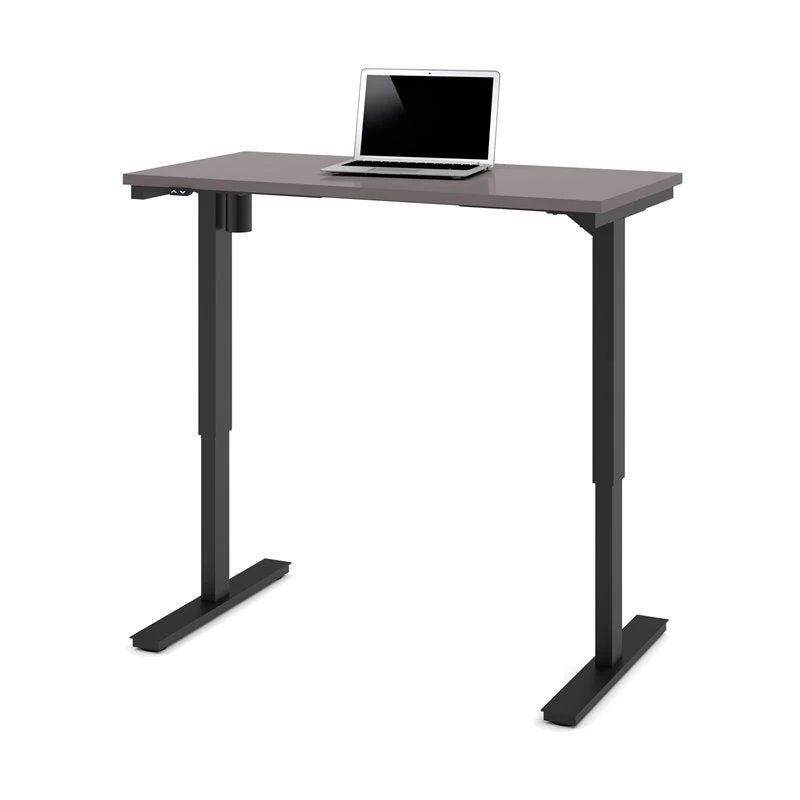This attractive desk from Bestar boasts a clean, minimalist design as well as premium quality. All components are covered by a 2 year warranty, and it features a durable 1″ commercial grade desk top coated with melamine to prevent scratches and stains. This desk is also on the cutting edge of current ergonomic trends, with an electric height adjustable desk top. This enables you to sit and work with your arms at the perfect height, or to stand for periods to increase circulation and overall health. The premium electric mechanism allows you to adjust the height of your desk quickly and quietly, and the top can go from 28″ all the way up to 45″.