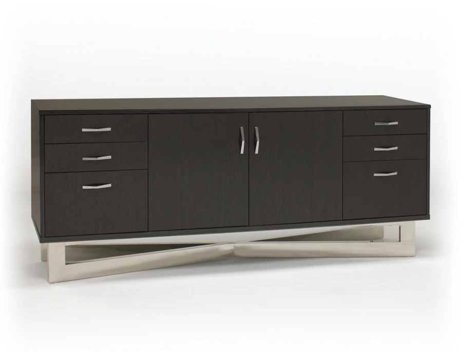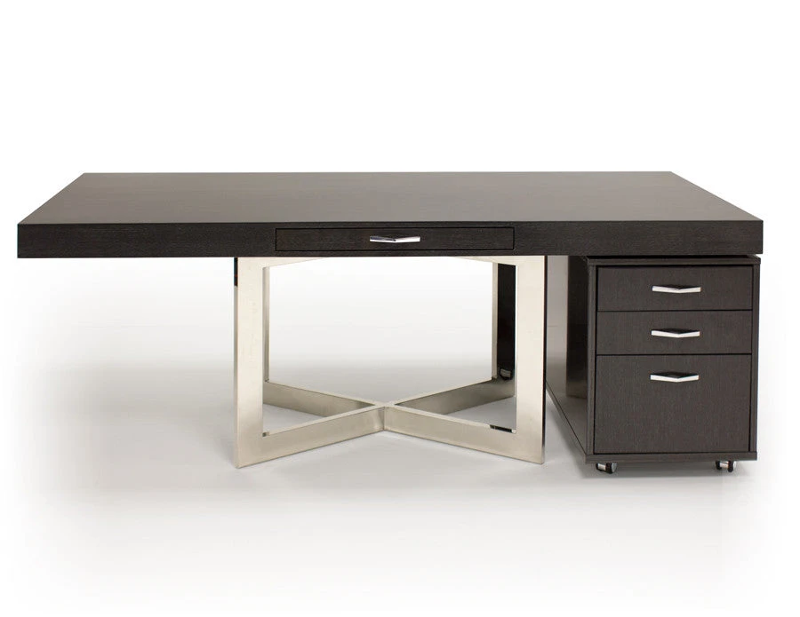 This new option offers a thick, large glossy gray oak top, sleek stainless steel base, clean modern lines, and a central drawer for storing office accessories.ย It is truly a “wow” piece and is constructed with precision to last you for the long haul.ย If you need some extra storage, add on the optional matching file cabinet.ย Or if you need space for lots of files and office items, add on the optional matching credenza, which is a very impressive piece on its own!