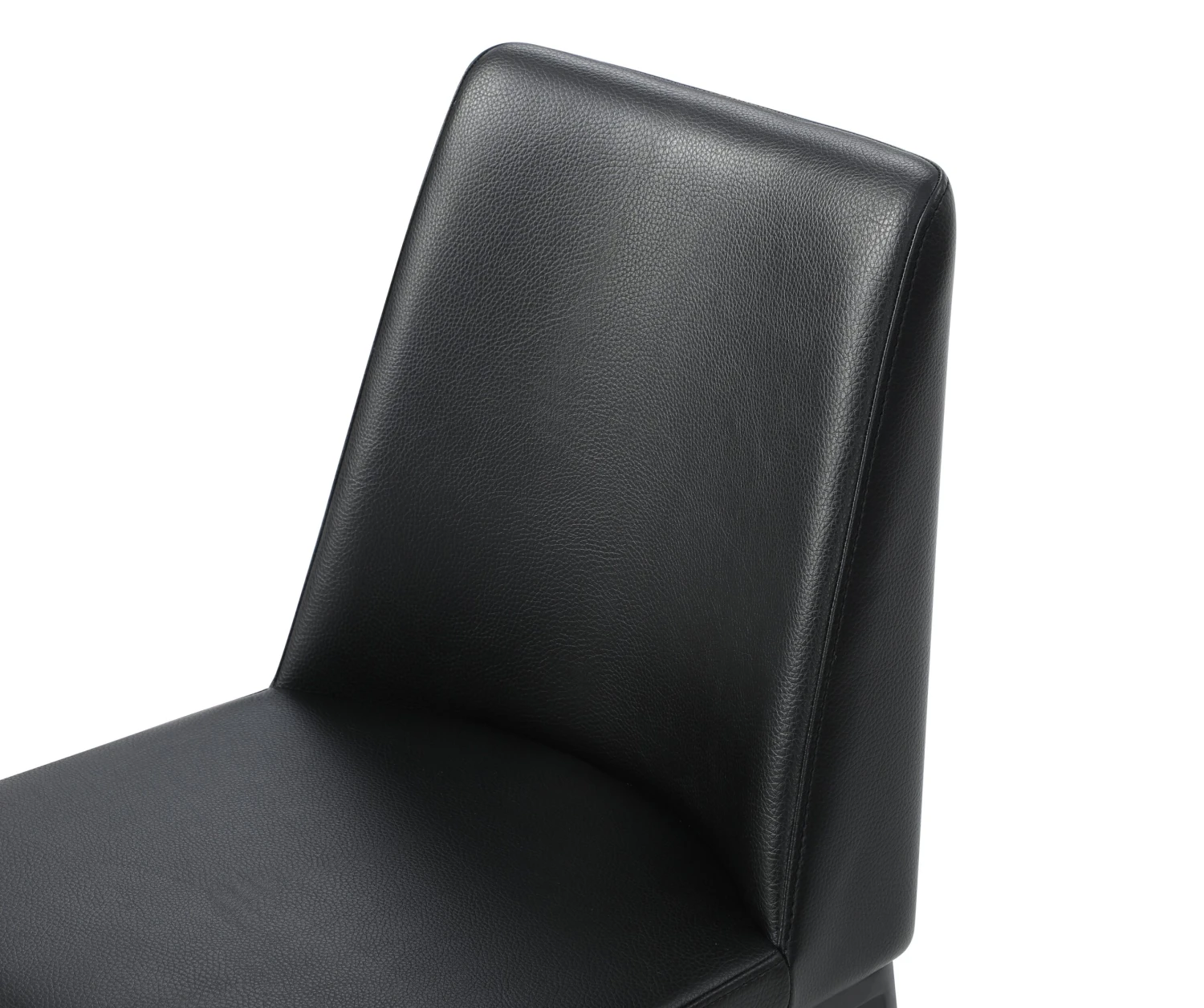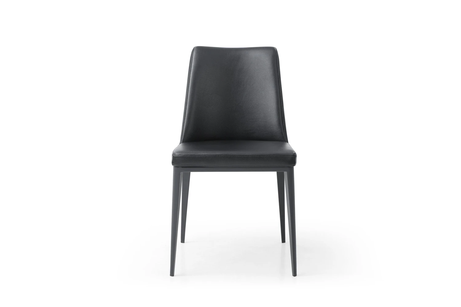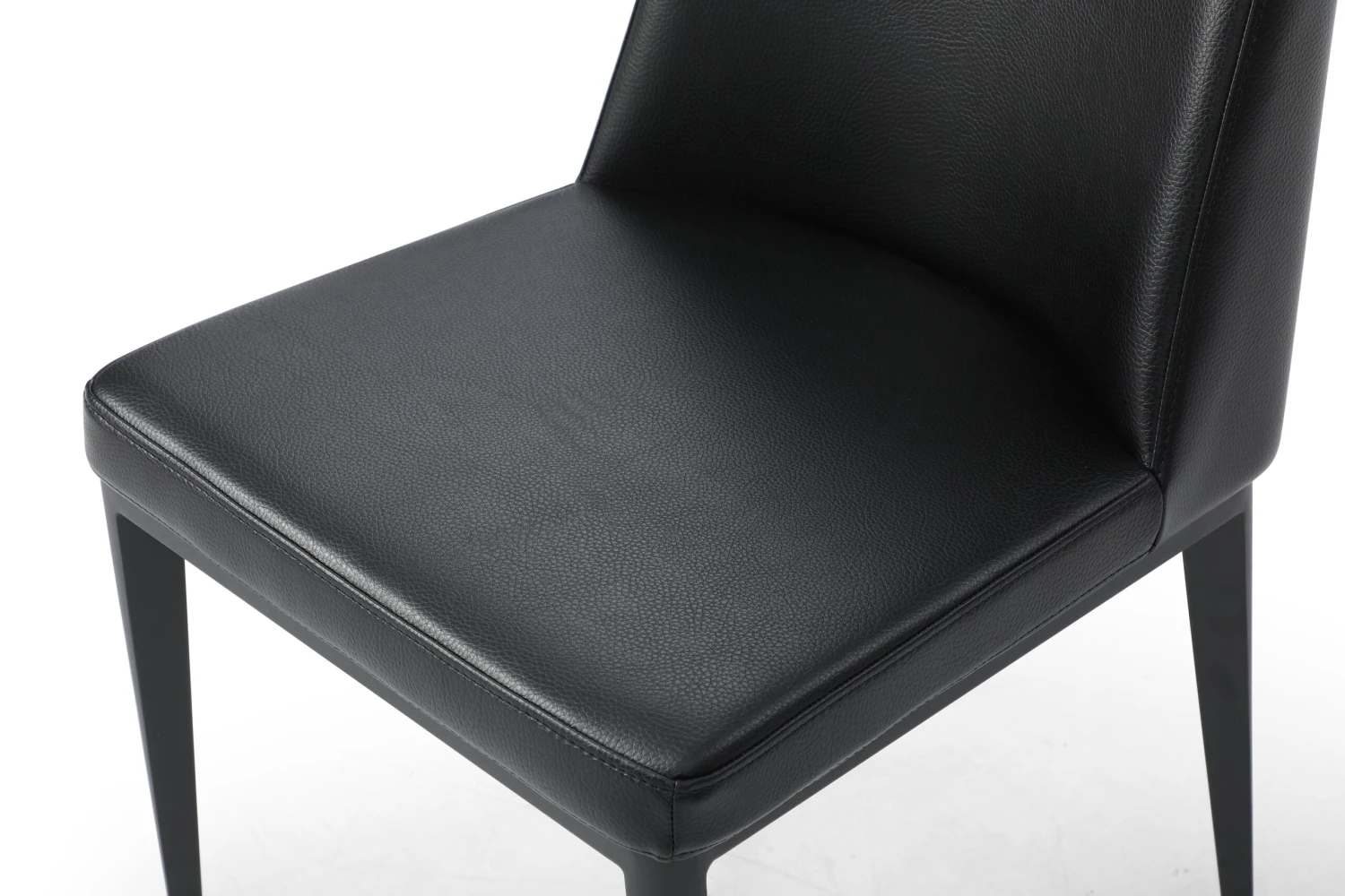 Upgrade your space with this Whiteline black chair that combines modern elegance and timeless style. Designed with clean lines and a sleek profile, it blends effortlessly with any dรฉcor. The seat is upholstered in chic black leatherette, paired with sanded black powder-coated legs for a contemporary yet classic look. Perfect for adding sophistication to your home or office.