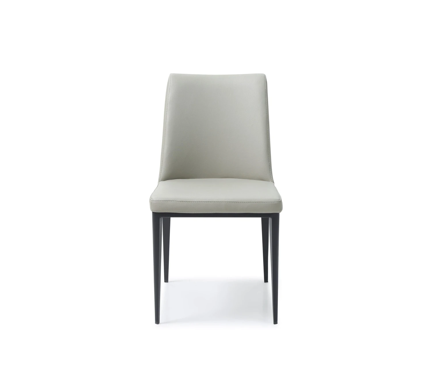 Enhance your space with this Whiteline gray chair, a perfect blend of modern elegance and timeless sophistication. Featuring clean lines and a sleek design, it complements any dรฉcor effortlessly. The seat is upholstered in stylish light gray leatherette, paired with sanded black powder-coated legs for a contemporary yet classic appeal. Ideal for adding a touch of refinement to your home or office.
