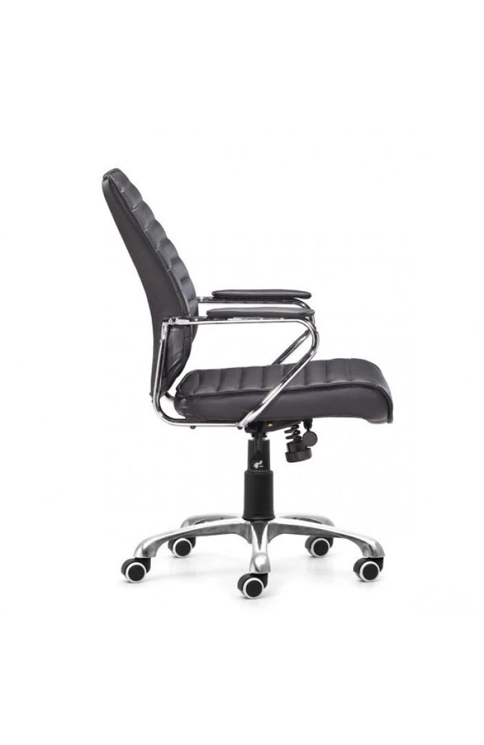 This modern mid-back chair by premium manufacturer Zuo Modern is elegant, comfortable, and engineered to last.ย It offers excellent comfort with its soft foam cushions covered by soft leather, and the padded armrests and height adjustment add to the comfort. Its chromed steel frame & premium casters ensure it will last for the long haul.