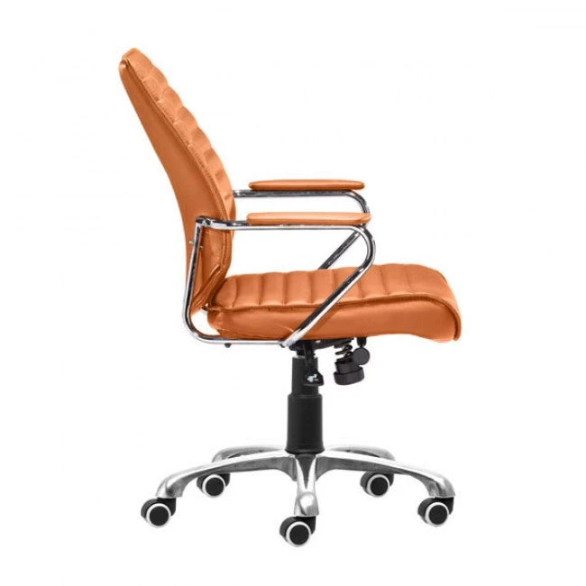 This modern mid-back chair by premium manufacturer Zuo Modern is elegant, comfortable, and engineered to last. It offers excellent comfort with its soft foam cushions covered by soft leather, and the padded armrests and height adjustment add to the comfort. Its chromed steel frame & premium casters ensure it will last for the long haul.