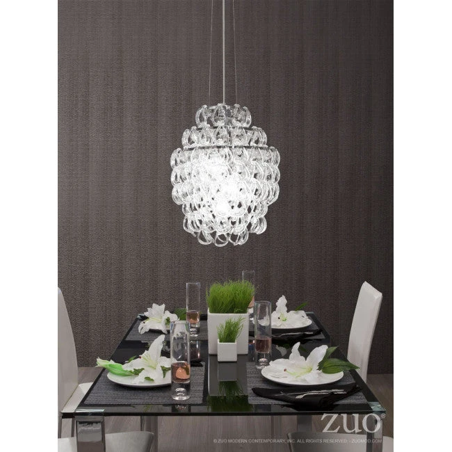 Give your office an elegant and opulent feel with this stunning crystal chandelier. It features crystallized loops made from glass chains, supported by a slim, chrome base. It is eye-catching and beautiful and will add light and warmth to your modern office.