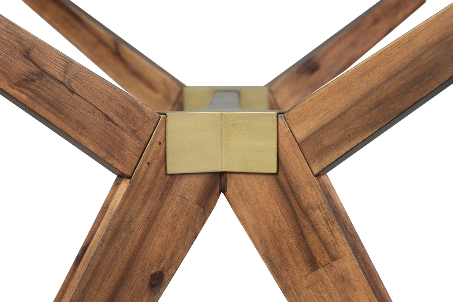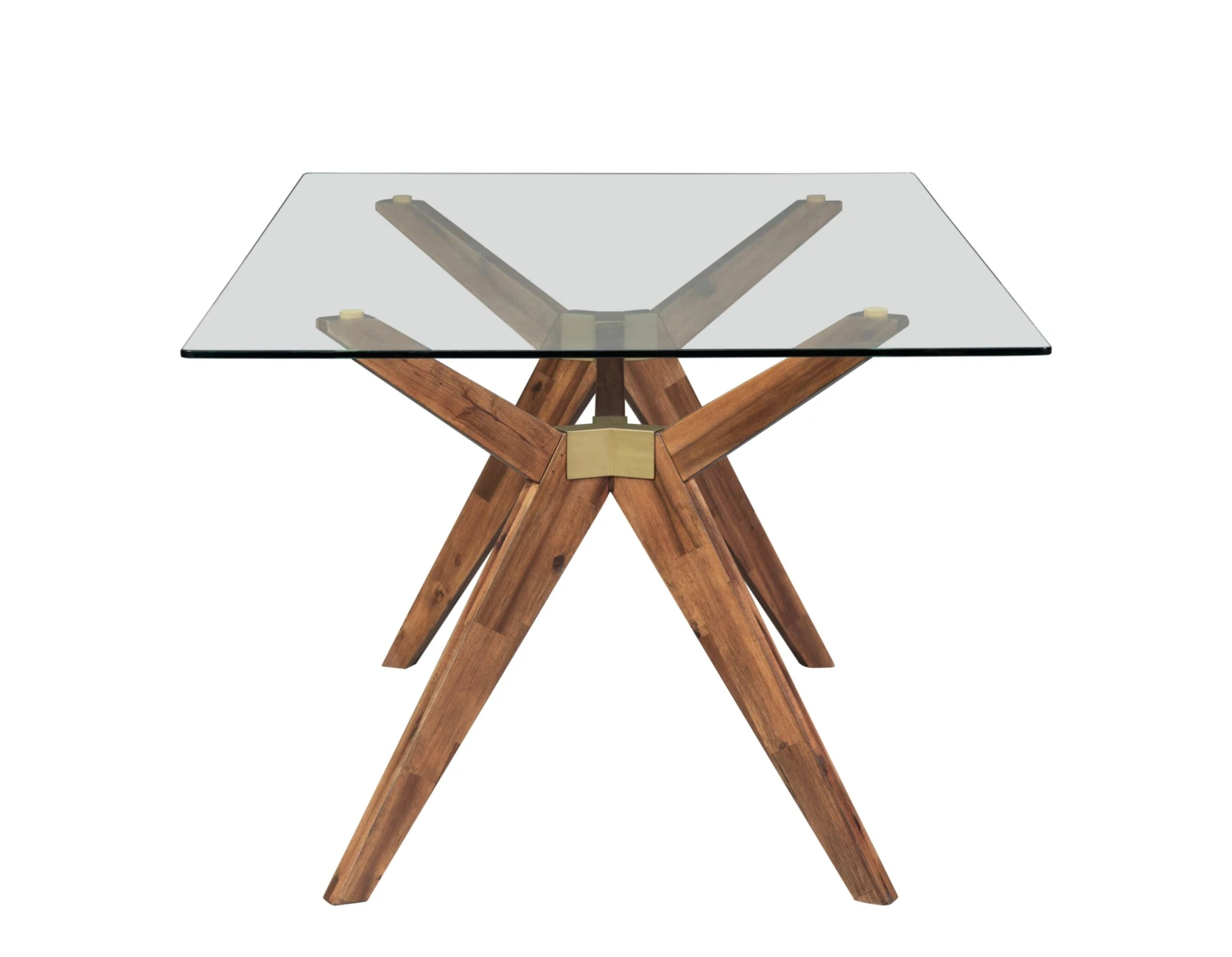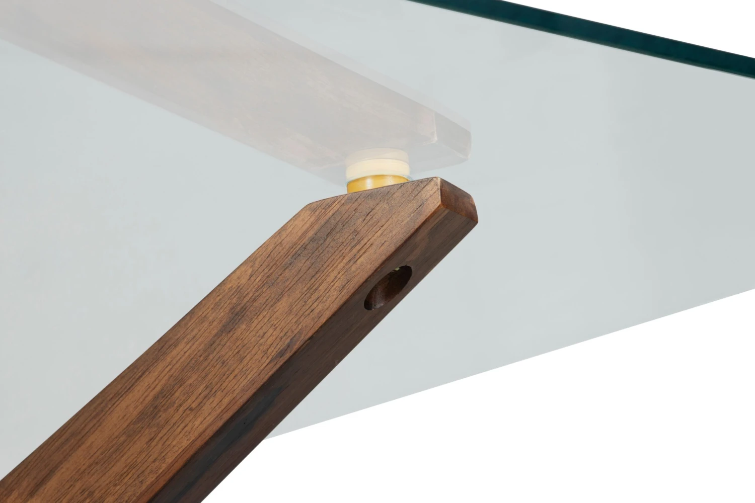 This bold and elegant executive desk or meeting table is the perfect centerpiece for your office. With walnut legs and a tempered glass top, it adds style and elegance to any modern office. It has a mid-century design and brass accents, ideal for any executive space. Look no further for the perfect desk for your office.ย