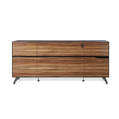This elegant and well-made credenza is finished in a sleek zebrano wood finish and coated in melamine to prevent scratching or staining the surface.ย It also comes with a 5 year warranty to give you peace of mind, and comes fully assembled so you won’t have to worry about putting it together.ย This will provide more than enough storage for your office items, files, binders, or whatever needs a place.ย File drawer, utility drawers, and storage cabinets with adjustable shelving help you find a place for everything.