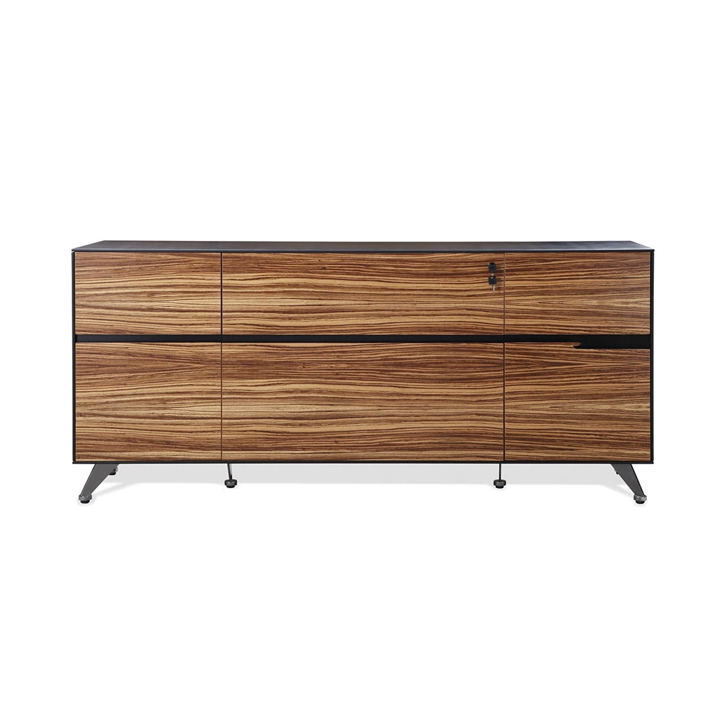 So chic and modern, you’ll swear you’re in New York City. Check out the combination of chrome accents and gorgeous zebrano wood – all with a 5 year warranty. The desk adjusts to your ideal sitting height, offers a power plug-in, and is glossed with a scratch-resistant coating. The cabinet, besides providing additional work space, has two drawers and lots of storage. Complete the set by adding the optional credenza.