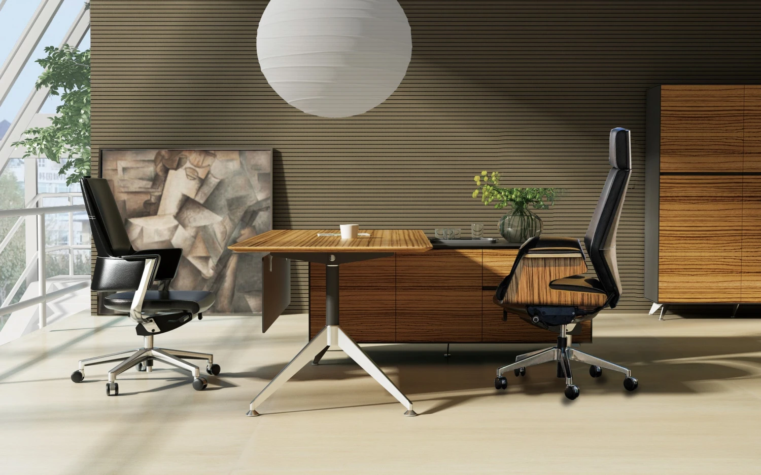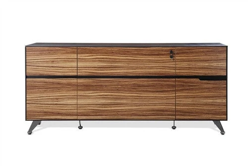So chic and modern, you’ll swear you’re in New York City. Check out the combination of chrome accents and gorgeous zebrano wood – all with a 5 year warranty. The desk adjusts to your ideal sitting height, offers a power plug-in, and is glossed with a scratch-resistant coating. The cabinet, besides providing additional work space, has two drawers and lots of storage. Complete the set by adding the optional credenza.
