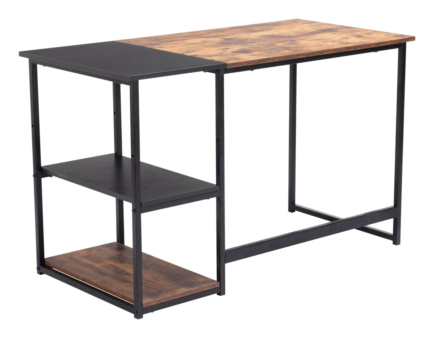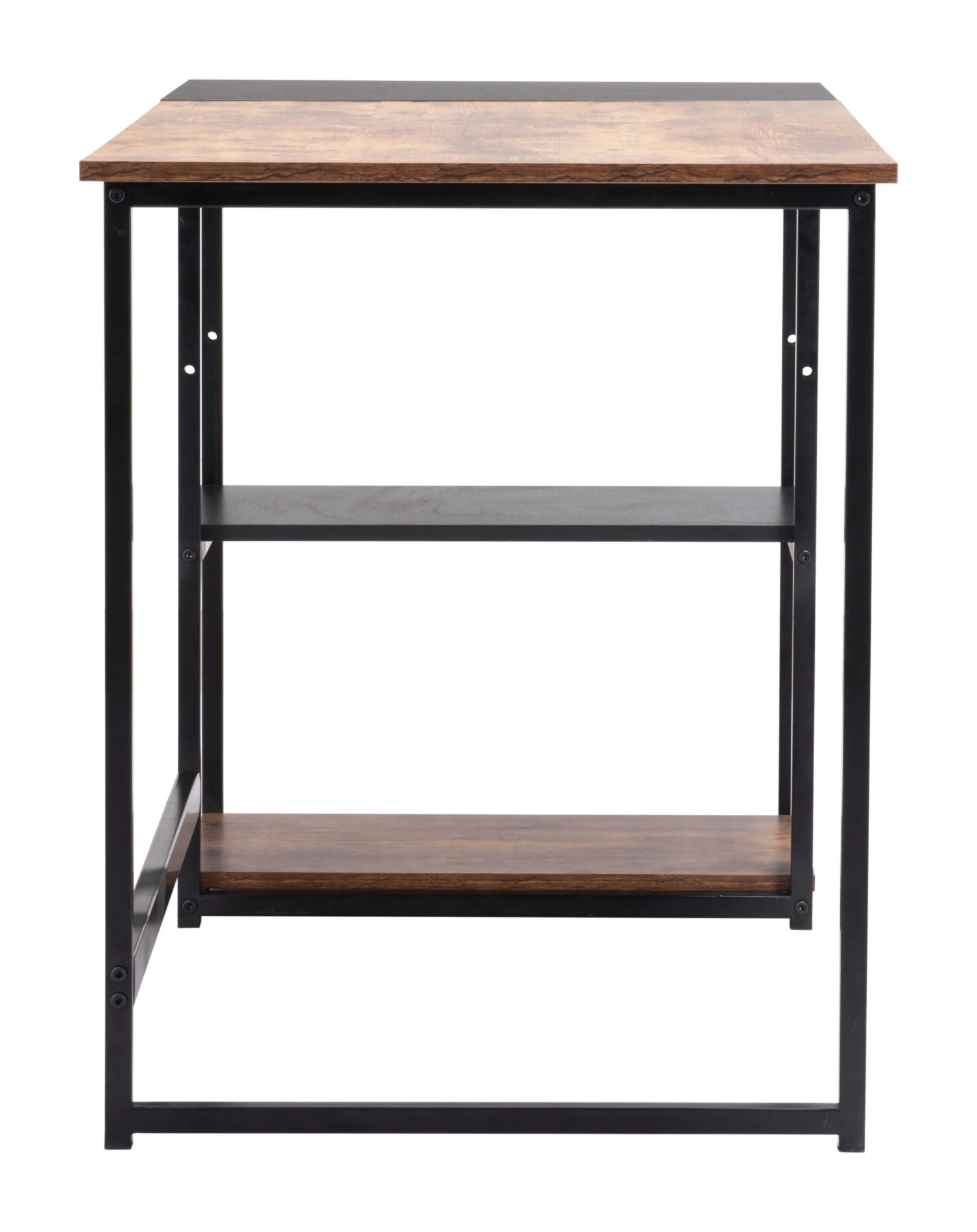 This vintage brown and black industrial workstation is a blend of industrial elegance and practicality. The rectangular tabletop provides ample space for all your work essentials. It also boasts two-tier shelves beneath the tabletop for handy storage options. It’s crafted with a powder-coated steel frame and protective rubber feet for durable stability you can count on. Built to hold up to 110 pounds.