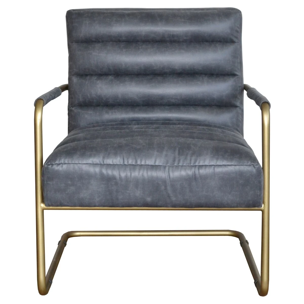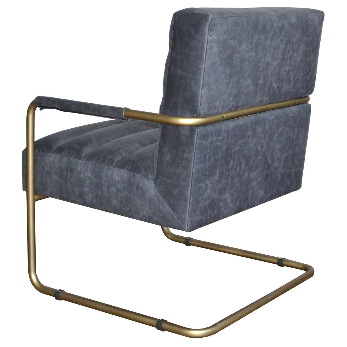 Comfort and elegance, all in one affordable chair. This chair features a thickly padded seat and back, upholstered with a soft leatherette. The frame is made from gold-brushed iron.